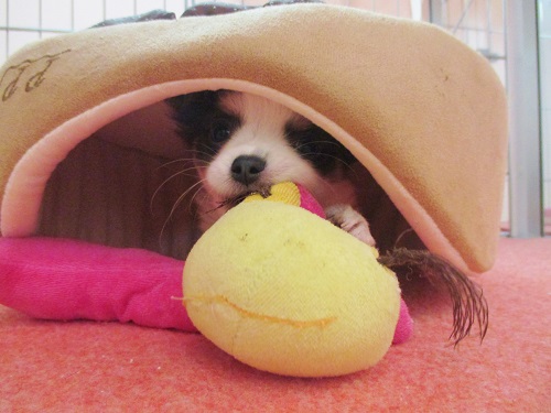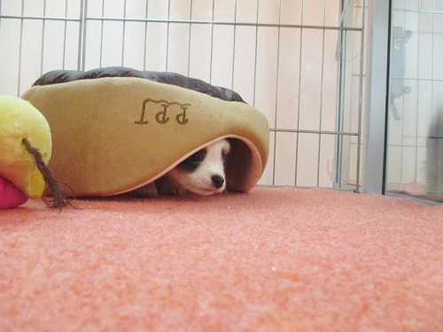 まだまだ体が小さいので、ベッドの下にスッポリ隠れてしまうチワワ君☆