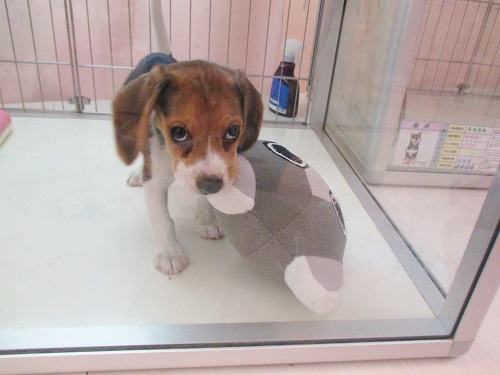 元気いっぱいに遊んでいるビーグルちゃん