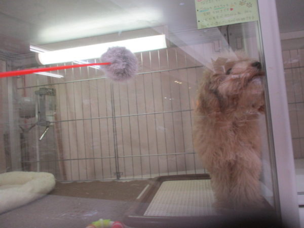 おもちゃを見つめるトイプー君
