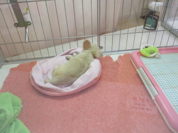 ベッドでお昼寝してるチワ君