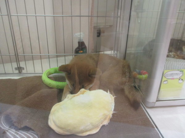 柴君、おもちゃでお顔が少し隠れてる