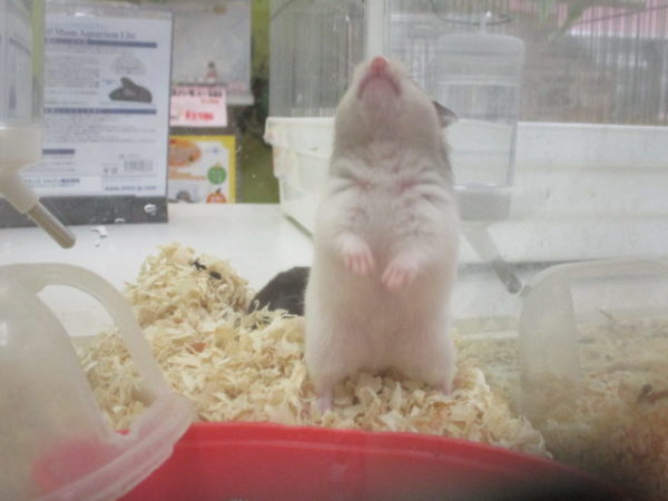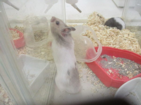 隣のハムちゃんが気になるみたい