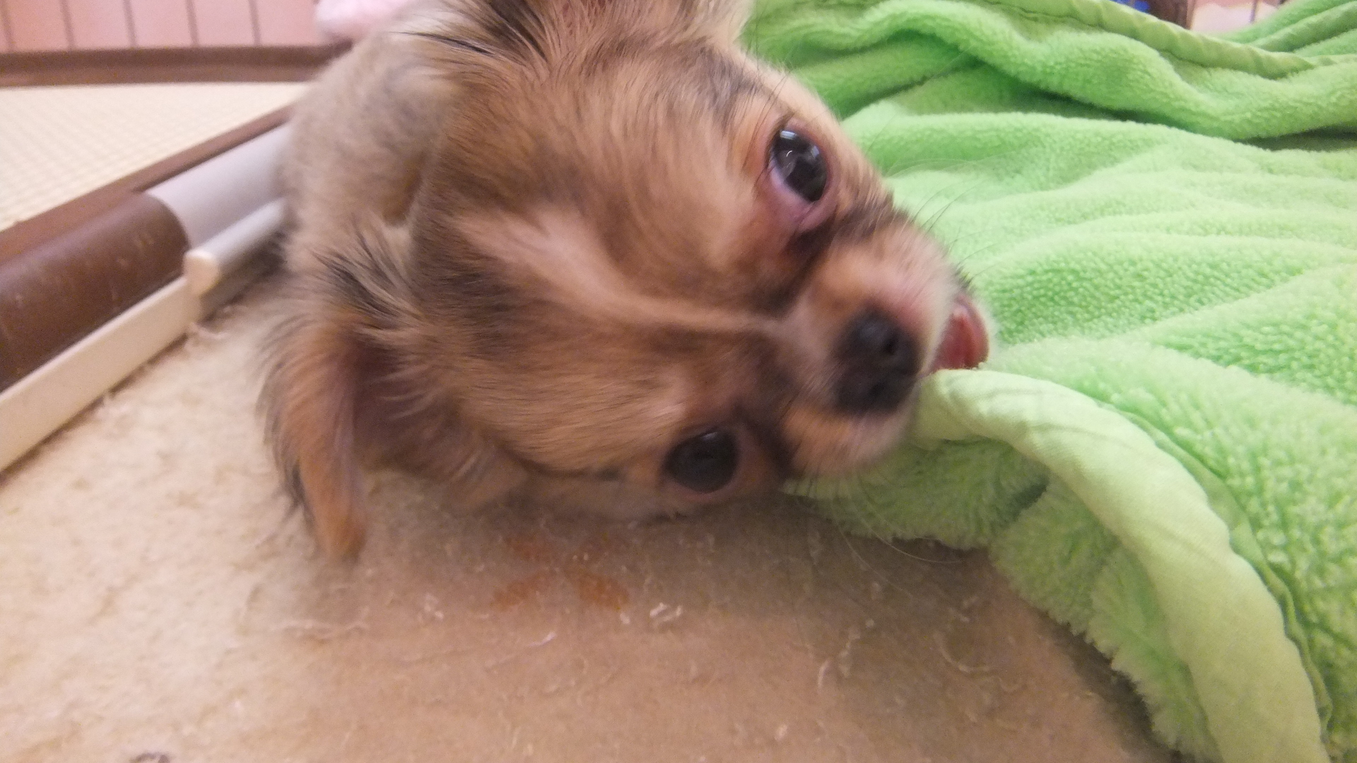 毛布の 端を吸い吸い