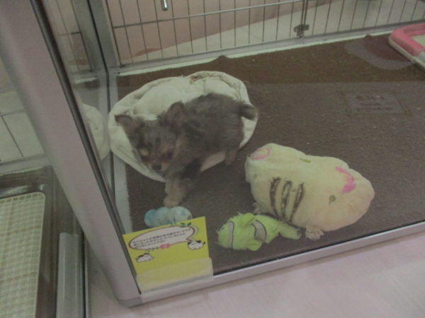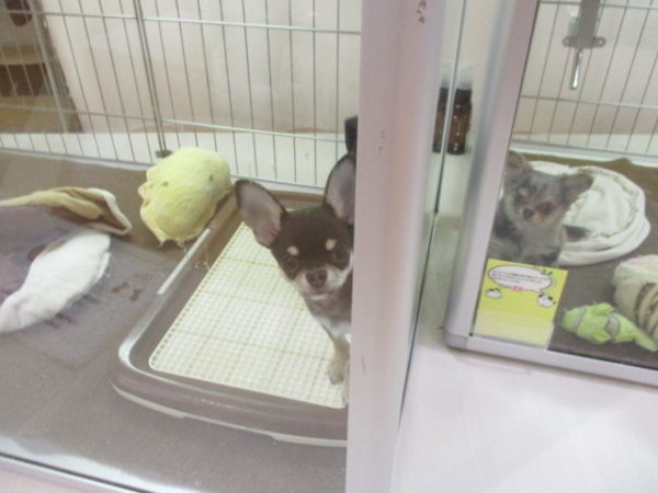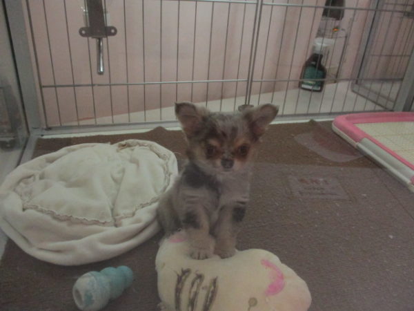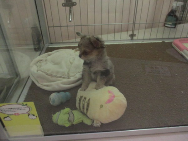 おもちゃの上にたつチワ君