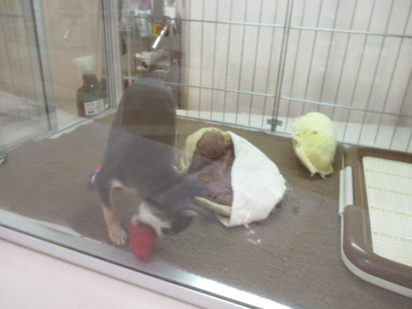 お隣のスムチ君、おもちゃと大暴れしてます