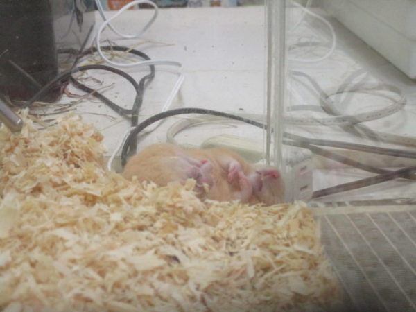 仰向けで爆睡しているキンクマ君
