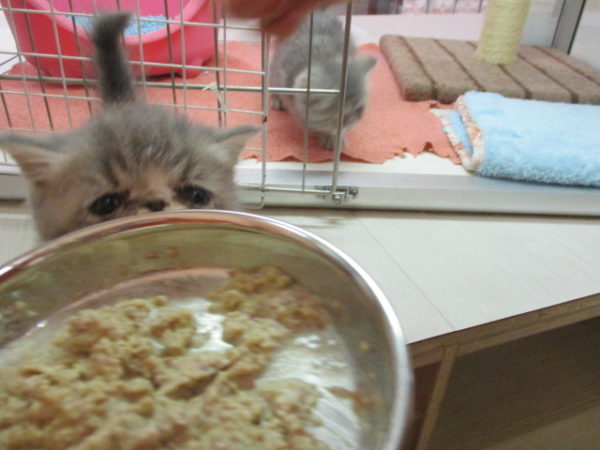 エキゾ君はまだ自分のご飯が残っているのに
