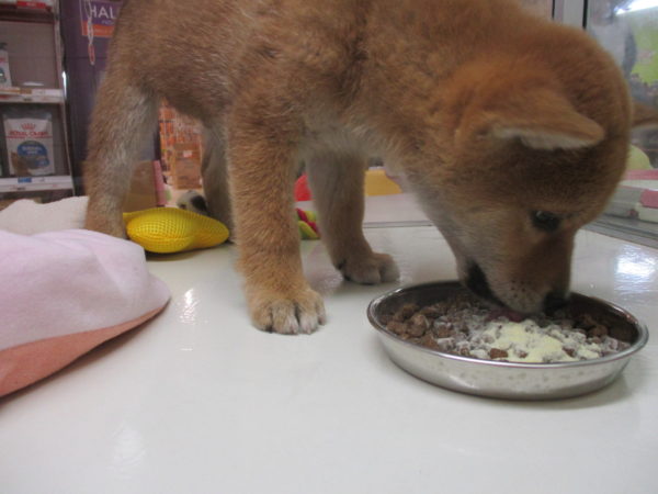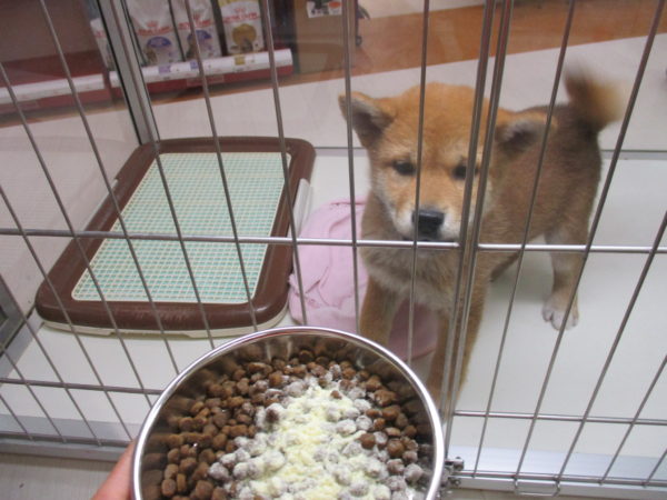ご飯を前に大暴れな柴1号君
