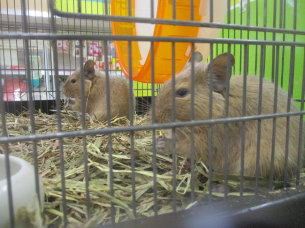 同じ格好で牧草を食べているデグー君クローバー