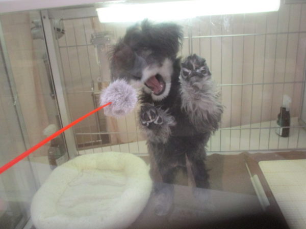 じゃらしを取ろうと頑張るプーちゃん![]()