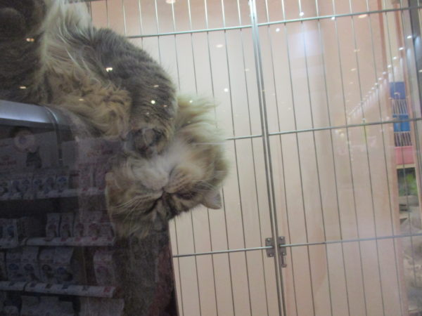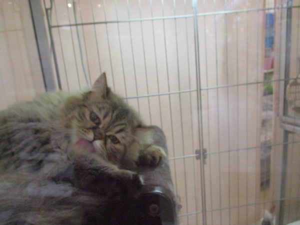 タワーの上で毛づくろい中のエキゾ君