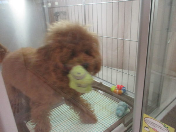 今日も魚のおもちゃを持って走るプー君