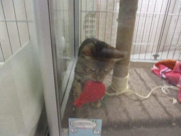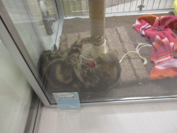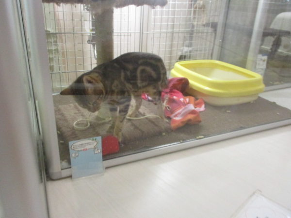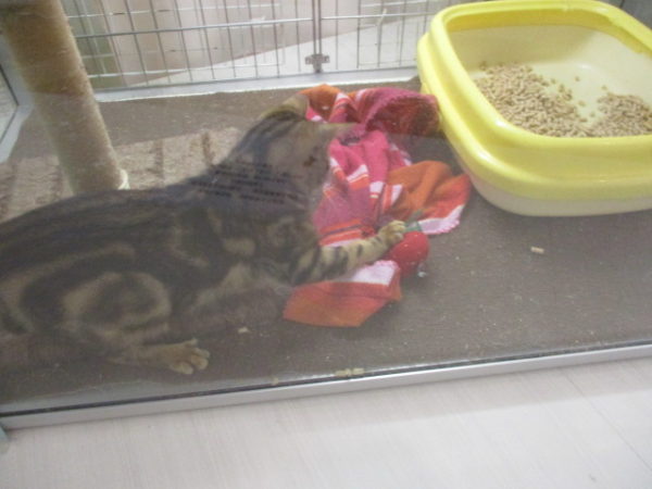 おもちゃで遊ぶアメショー君