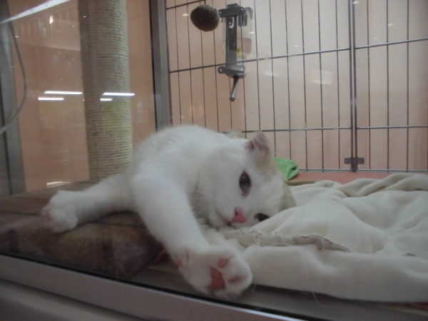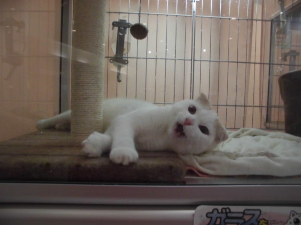 カメラを向けると横たわるスコ君