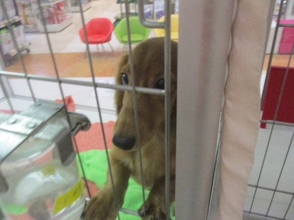 いつもカーテンの隙間から覗いてるダックス君![]()