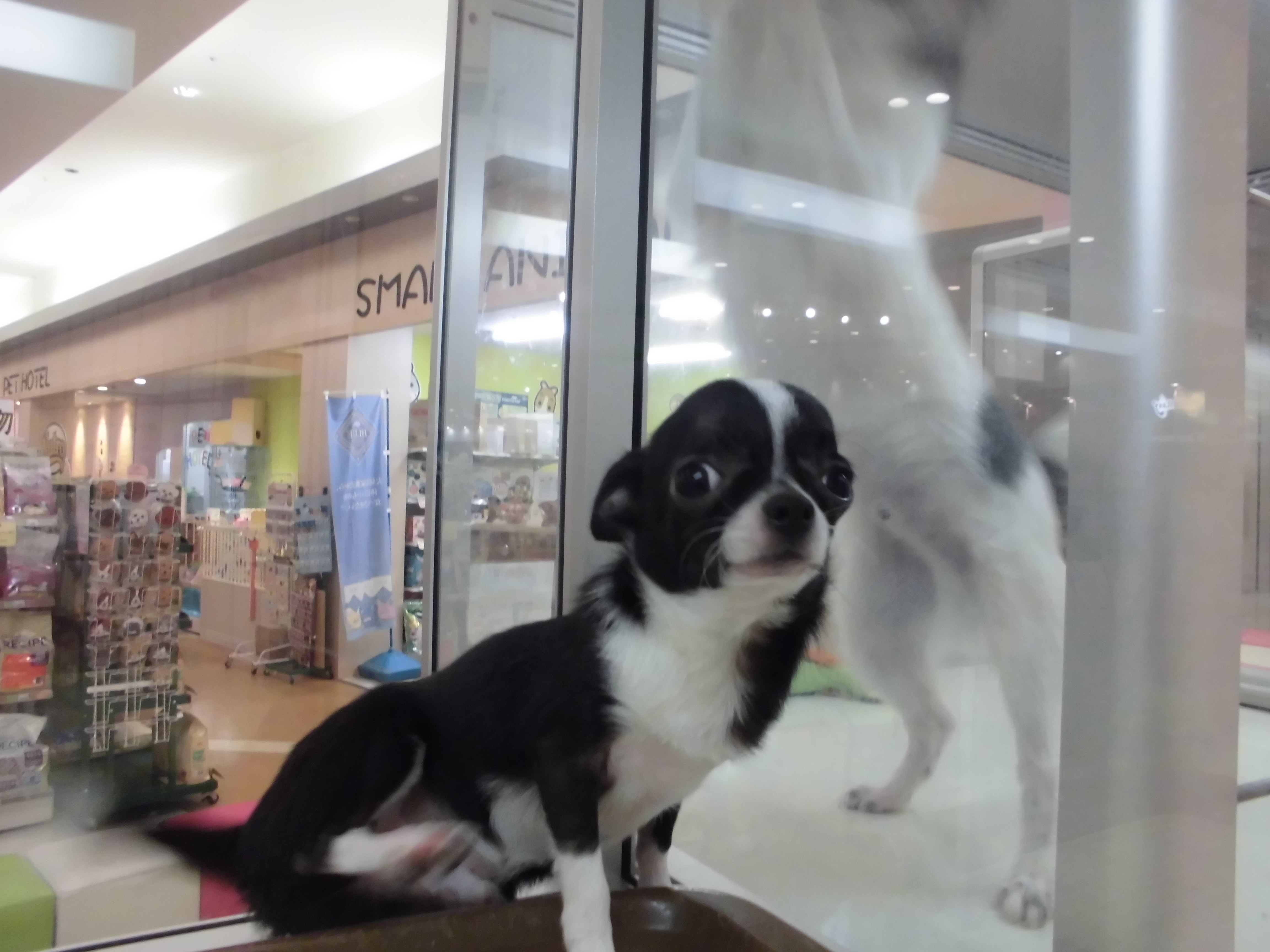 にらめっこ中のチワワ君