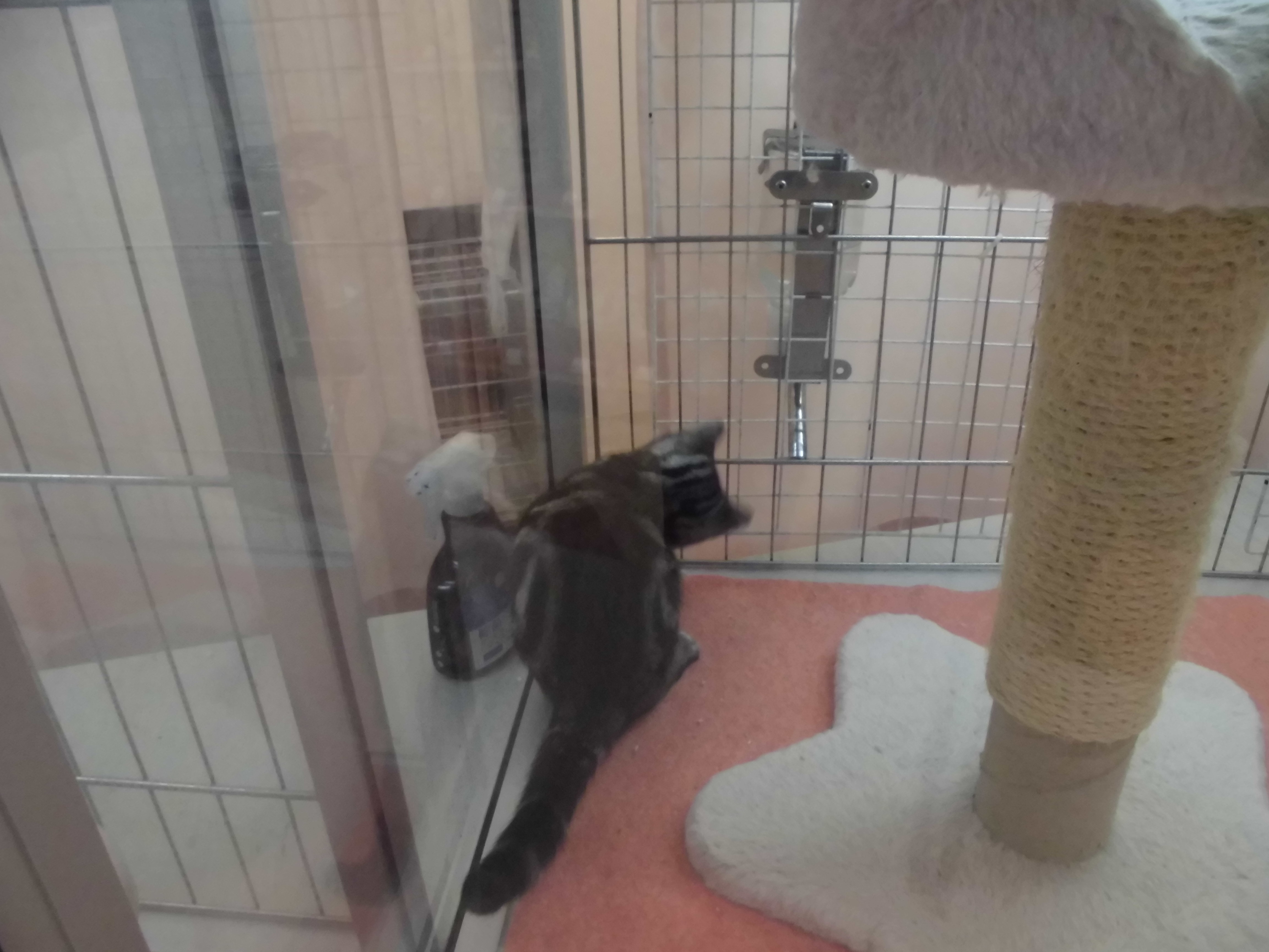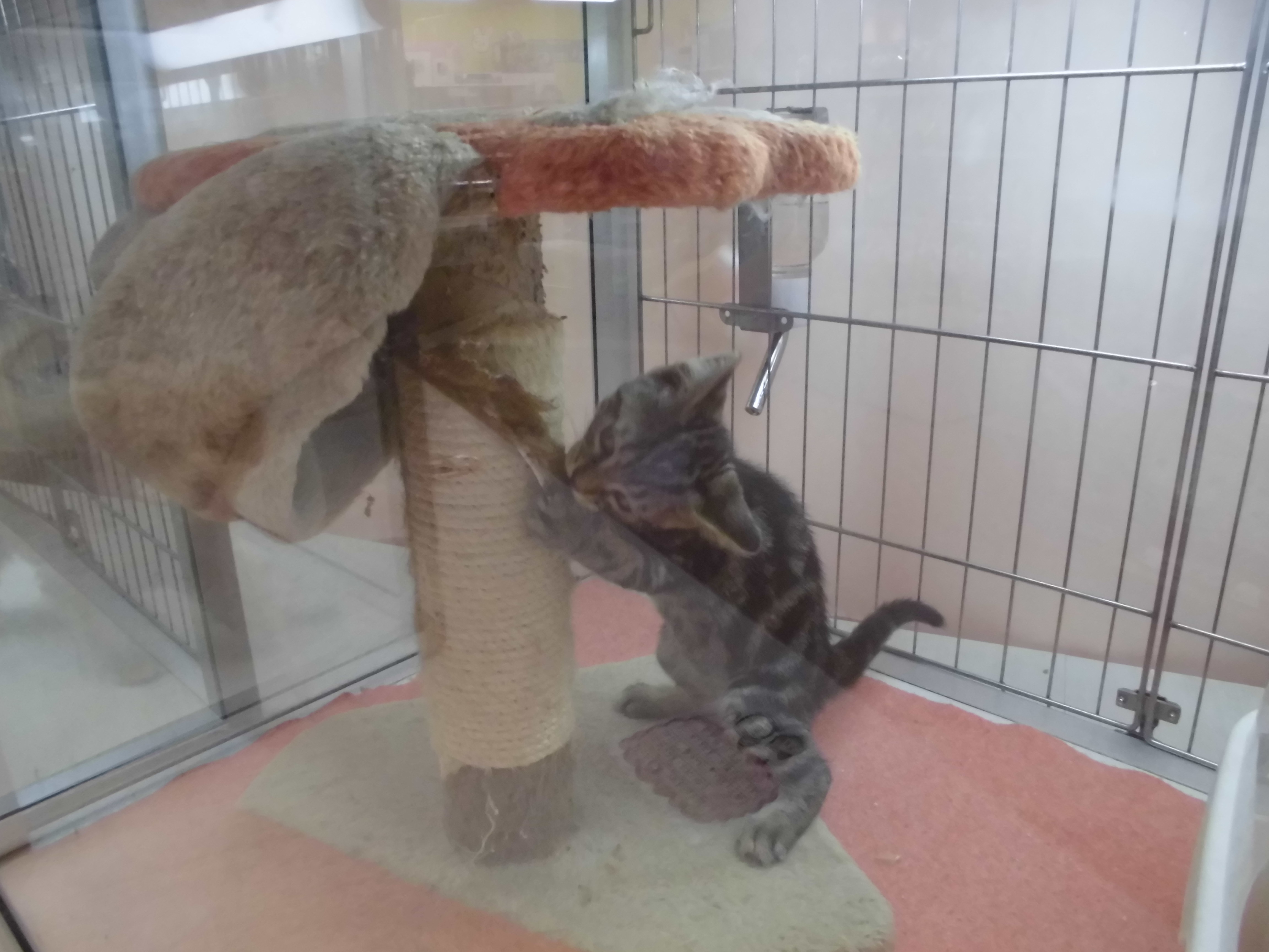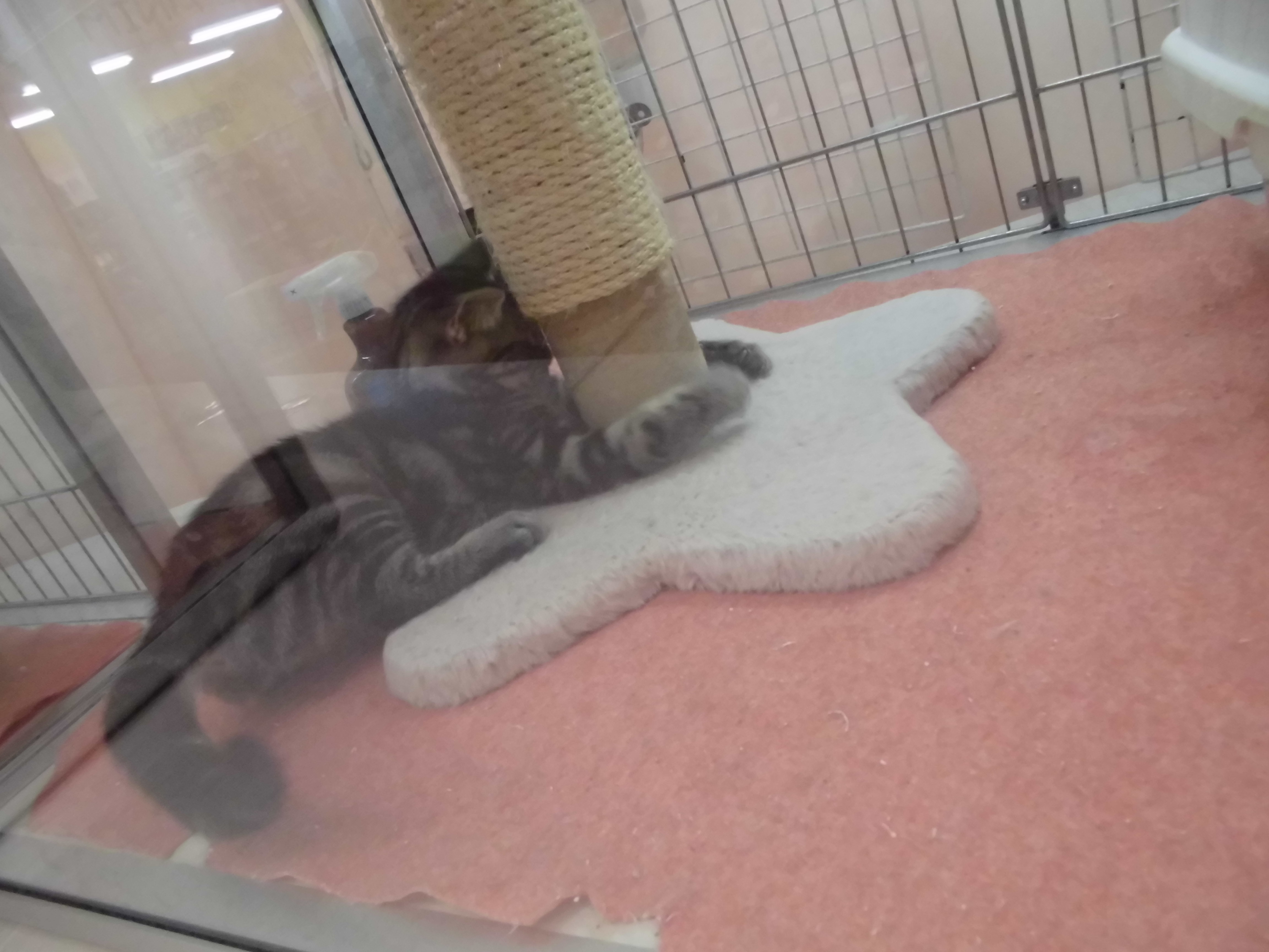 キャットタワーに抱きついてました(´・ω・`)