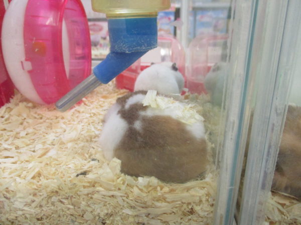 床材をかけるシロハムちゃん