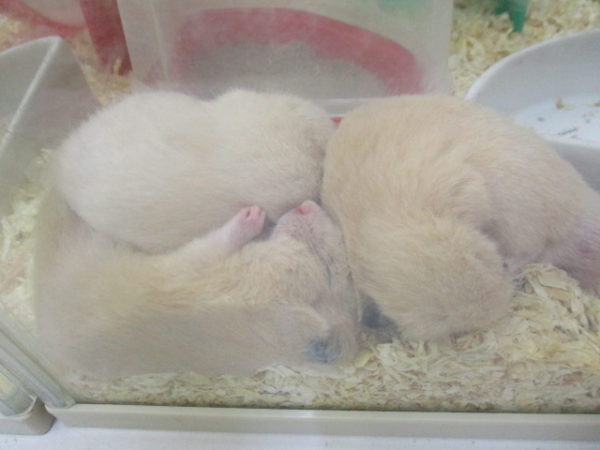 ぎゅうぎゅうで押しつぶされてるハムちゃん![]()