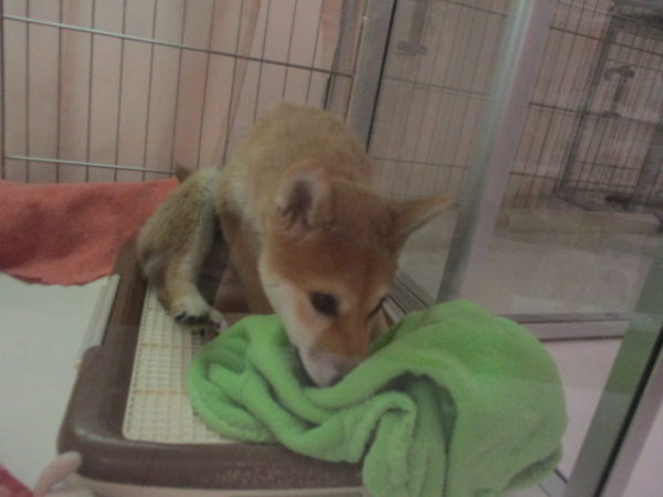 毛布が気になる柴君