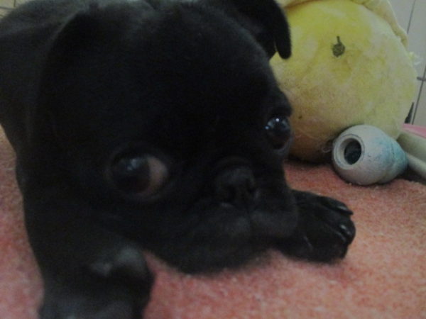 どんな格好でも寝れちゃうパグちゃん![]()