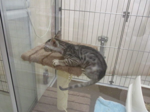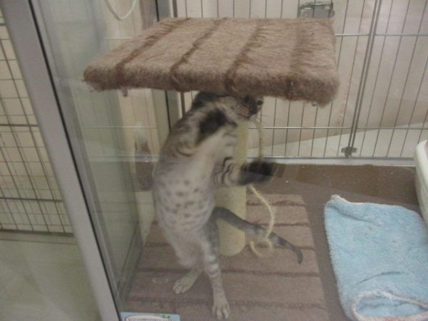 キャットタワーに頭をぶつけてました
