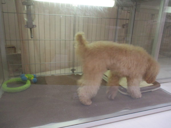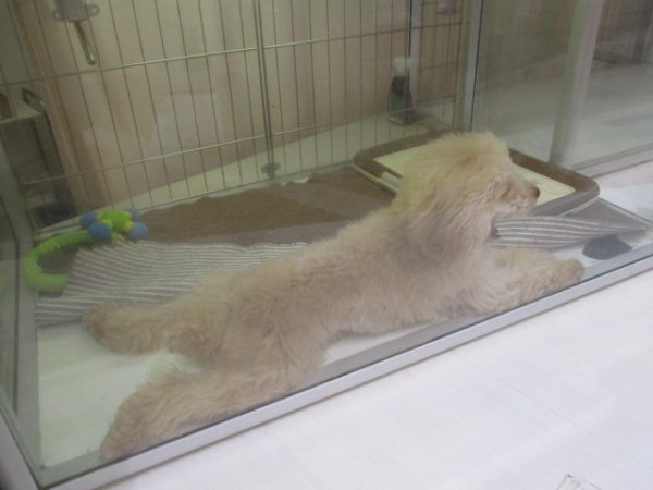ひんやりした床にペターっと転がるトイプー君
