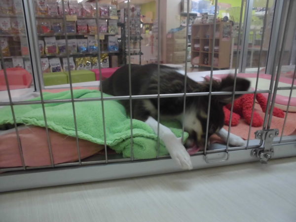 子犬たちはいろんな物をペロペロしてます(^-^)