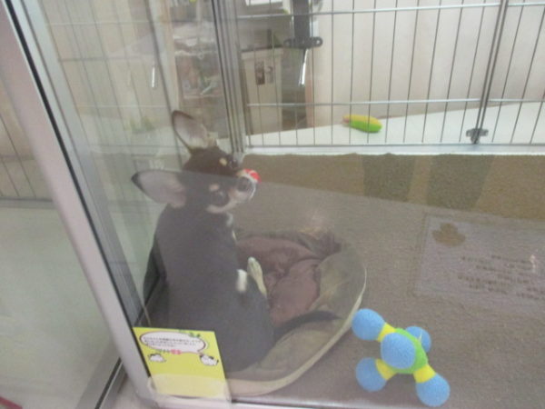 チワ君はベッドで遊びつつお水飲んでました(*´▽`*)