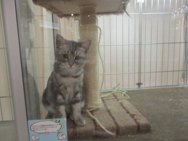 眠そうなのに眩しい方を向いてたアメショー君![]()