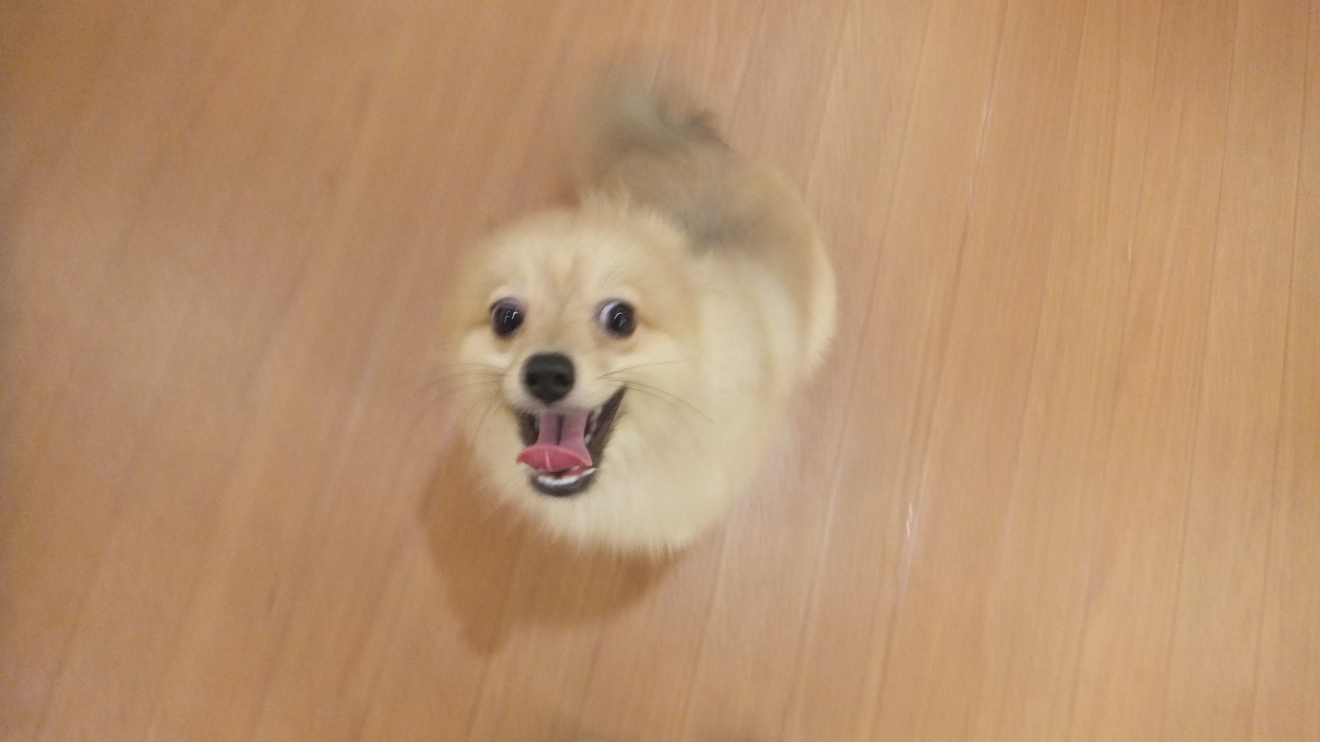 じーっとこちらを見てくるポメ君![]()
