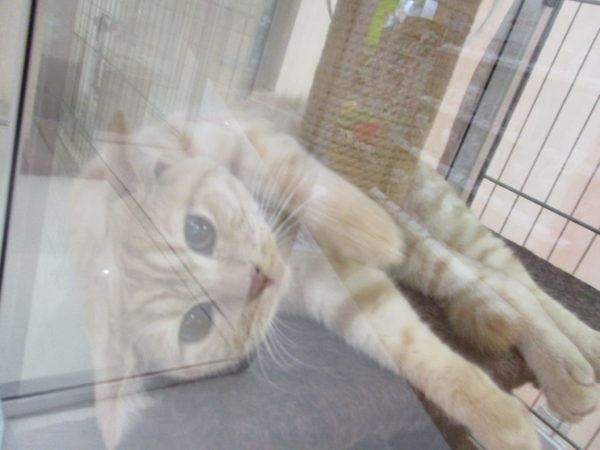 爪とぎポールに巻き付いてるスコ君