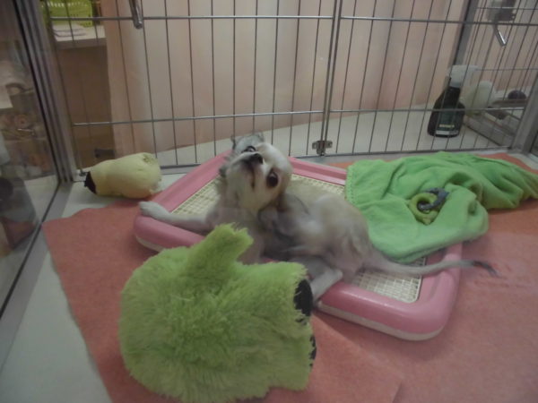 すっきりしたのかマットで遊びだしました