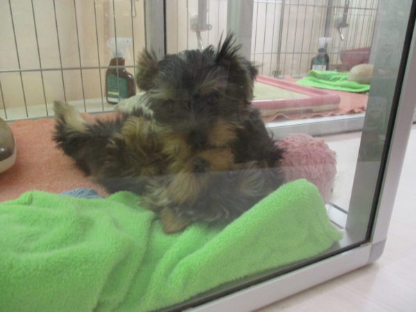 後ずさりするヨーキー君