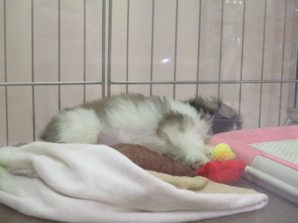 ぶーちゃん おもちゃを嗅ぎながら