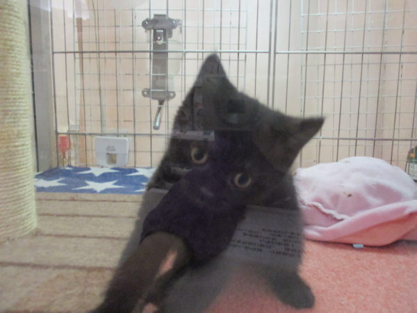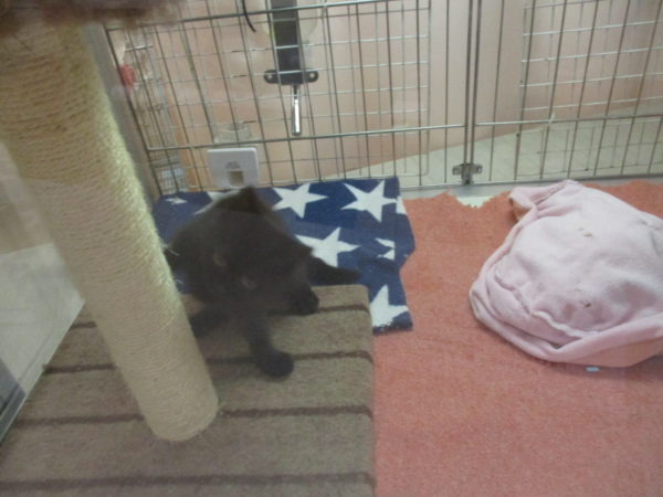 小さい黒い子が隙間から見てる