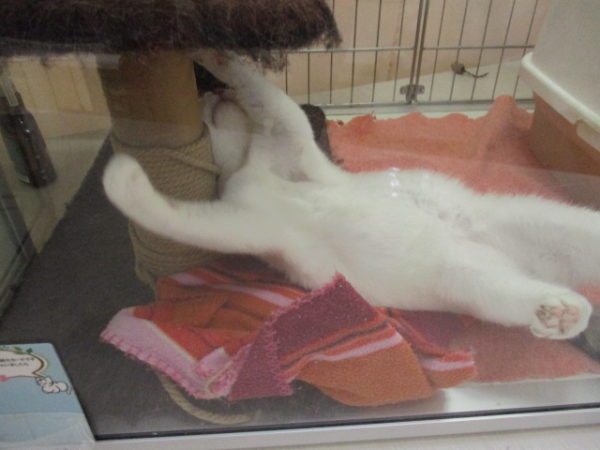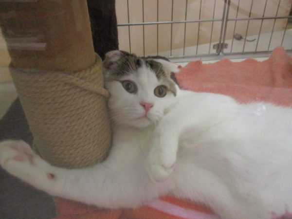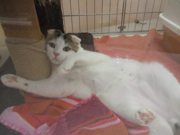 大胆な格好でくつろぎ中のスコ君