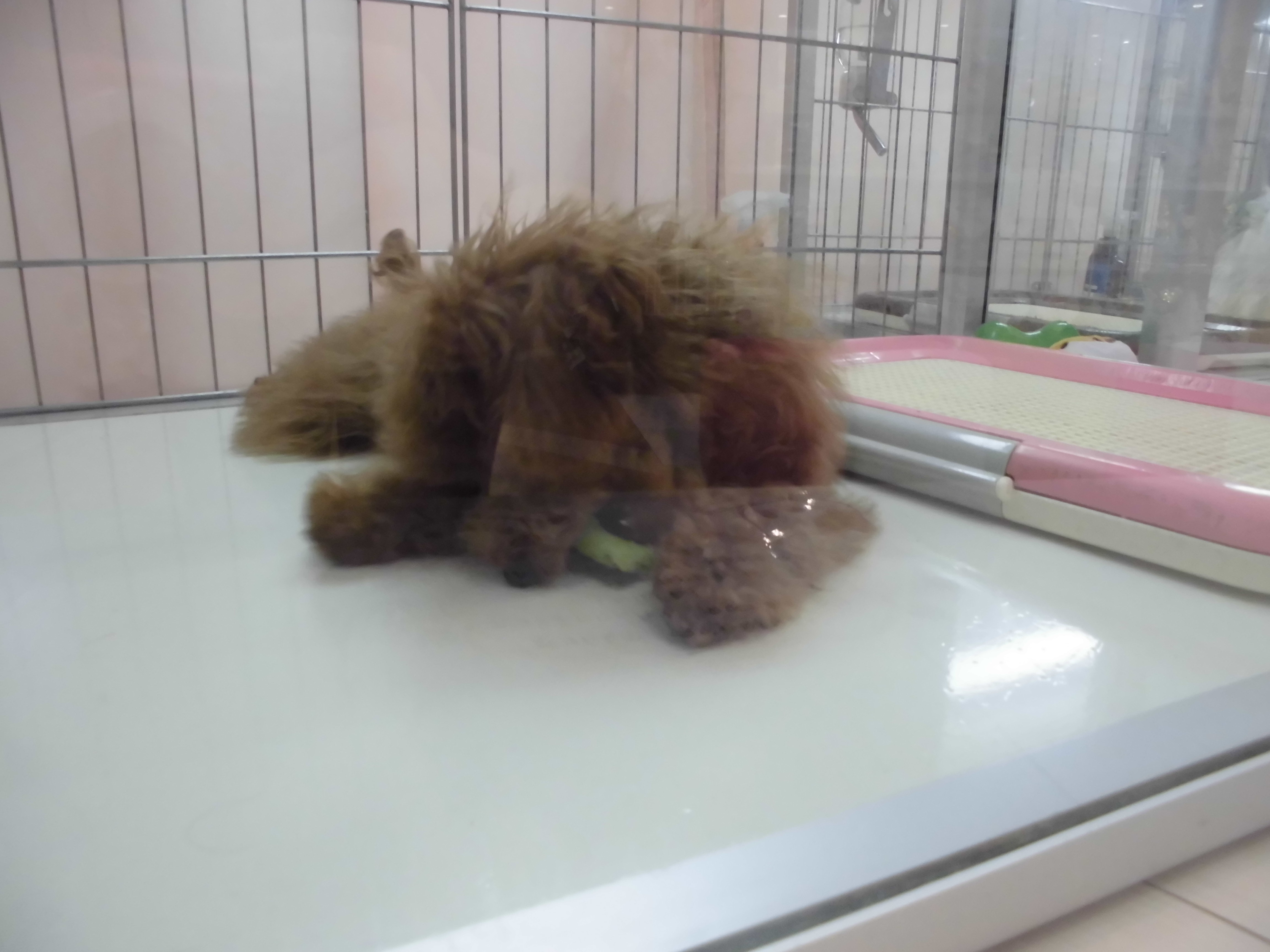カメラに気が付いたレッドのトイプー君