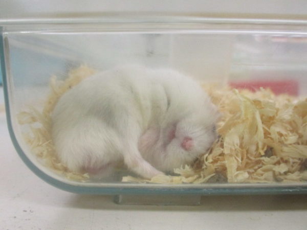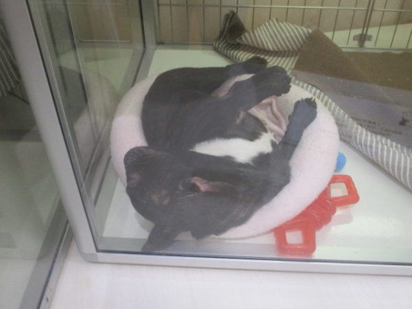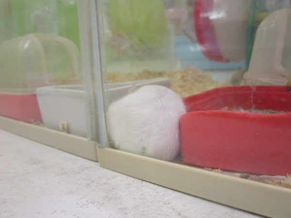 ケージの端で 爆睡
