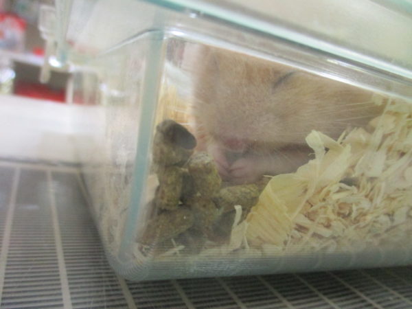 おがくずを掘ってるゴールデンちゃん