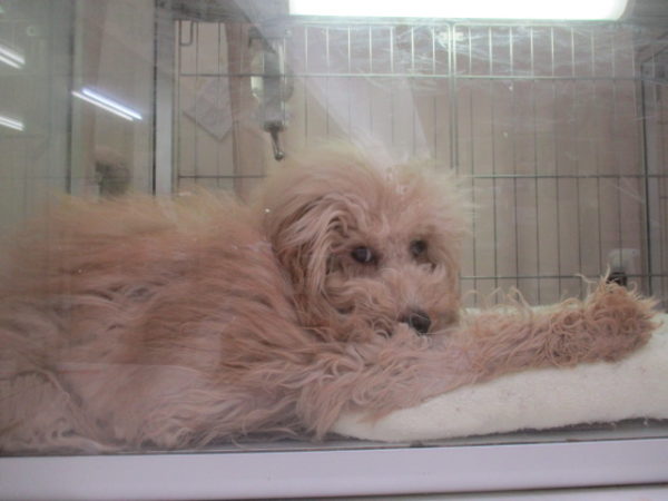 おもちゃを見つめるトイプーちゃん