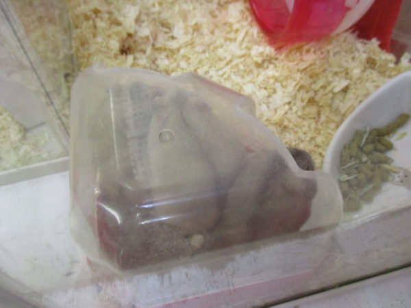 隠れることなく堂々と寝てるハムちゃん