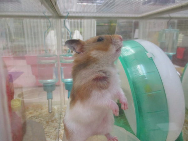回し車の上に乗ろうとするハムちゃん