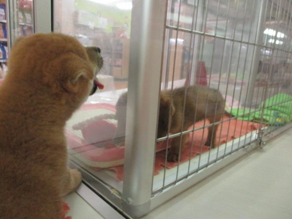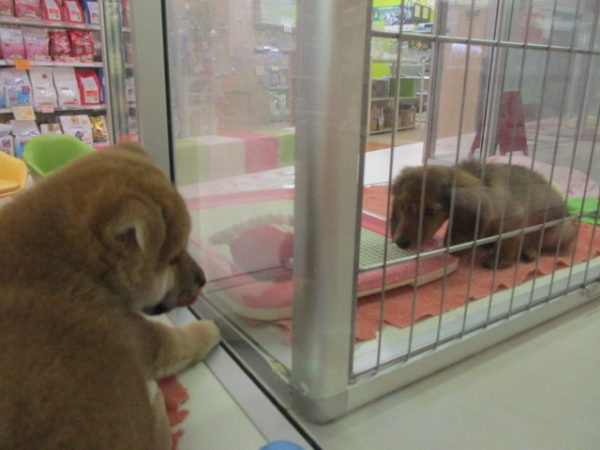 お隣のダックス君に律儀にご挨拶