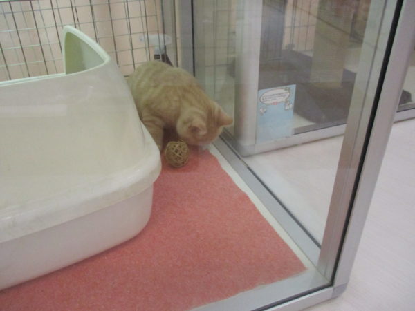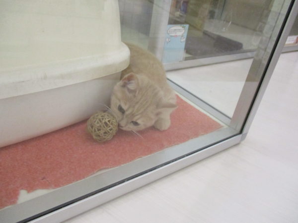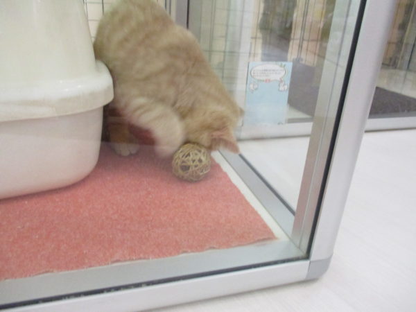 鈴入りのボールで遊んでるスコ君