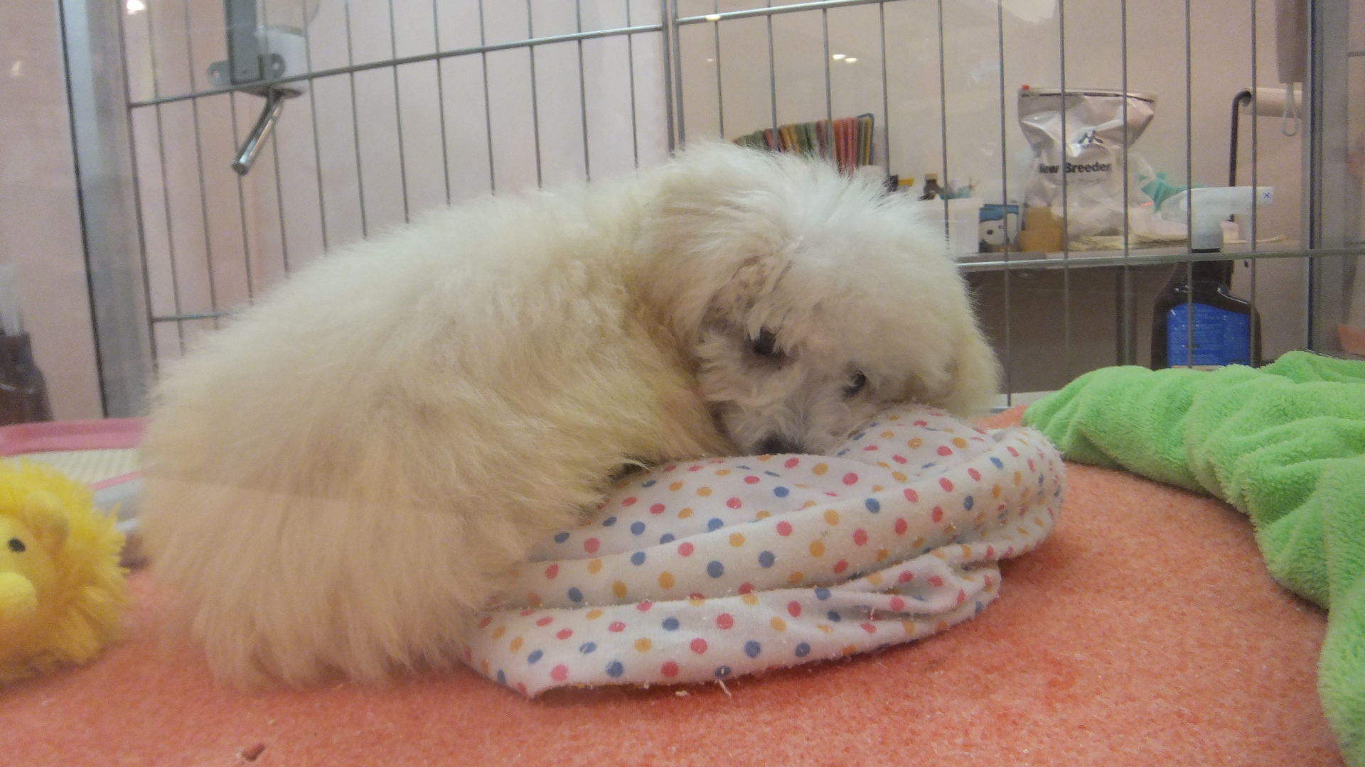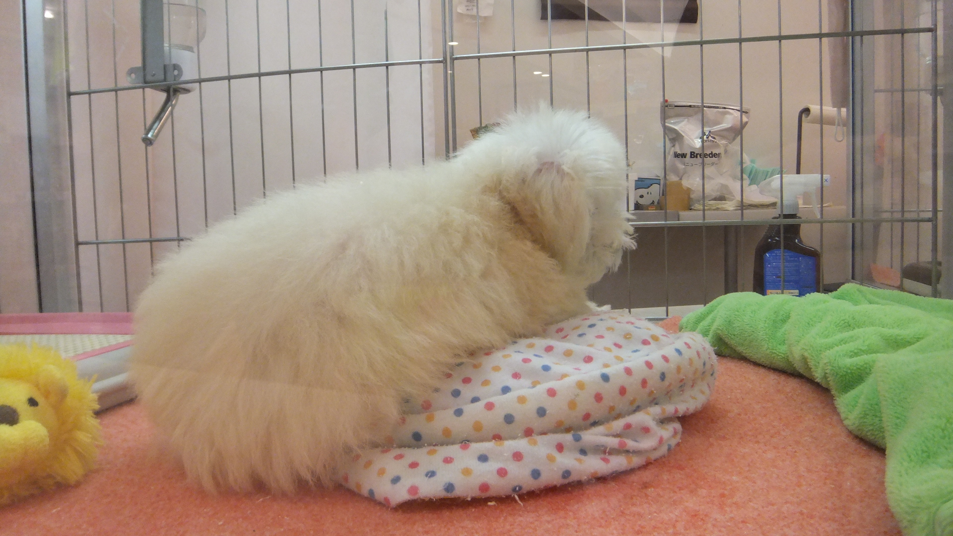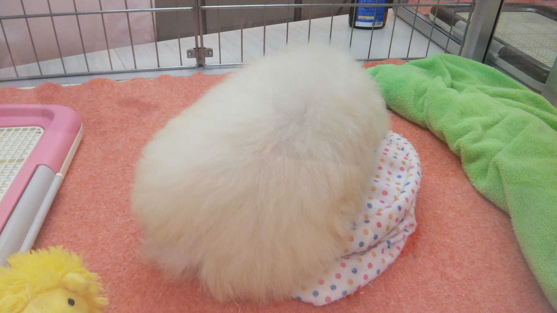 子犬のブースの中にわた菓子が![]()