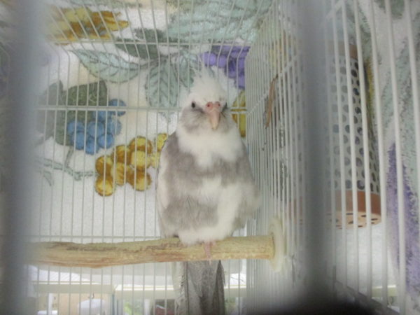 ヒーターの横で暖まるオカメさん