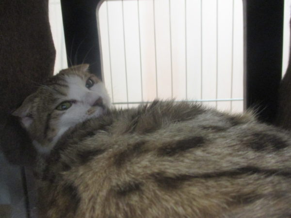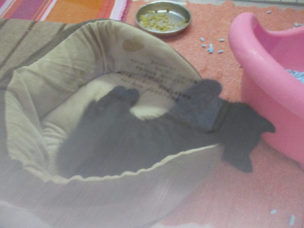 またまたベッドからなだれ落ちてるミックスちゃん