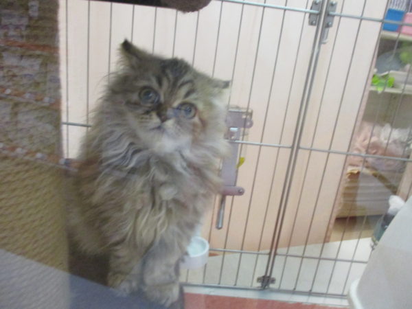 カーテンで遊ぶエキゾ君