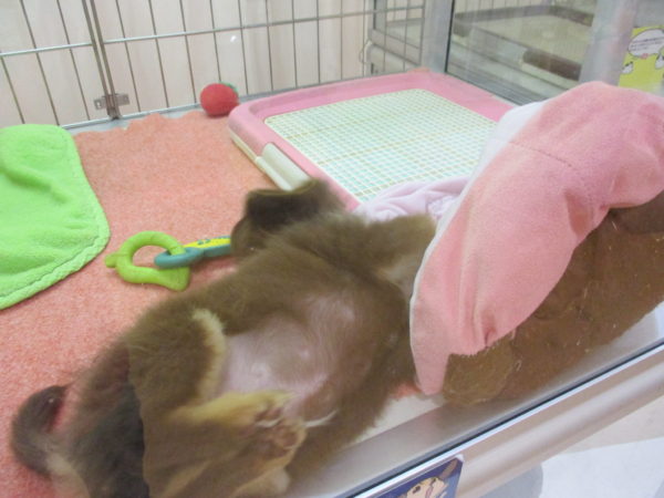 ベッドで遊んでるミックス君